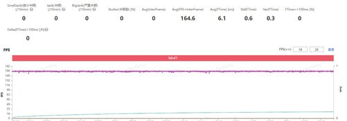 在实测中,《原神》极高画质60帧模式下平均帧率稳定在60.0帧;《王者荣耀》超高分辨率+极致帧率下能保持120帧满帧运行;《三角洲行动》则能开启165Hz模式,实测平均帧率164.6帧。这种稳定度,就连部分万元级电竞手机都难以做到。